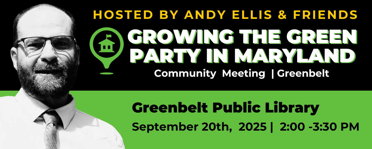 Are you ready to shake up Maryland politics? Join Andy Ellis for Governor and fellow changemakers for an exciting Green Party Community Meeting in Greenbelt!